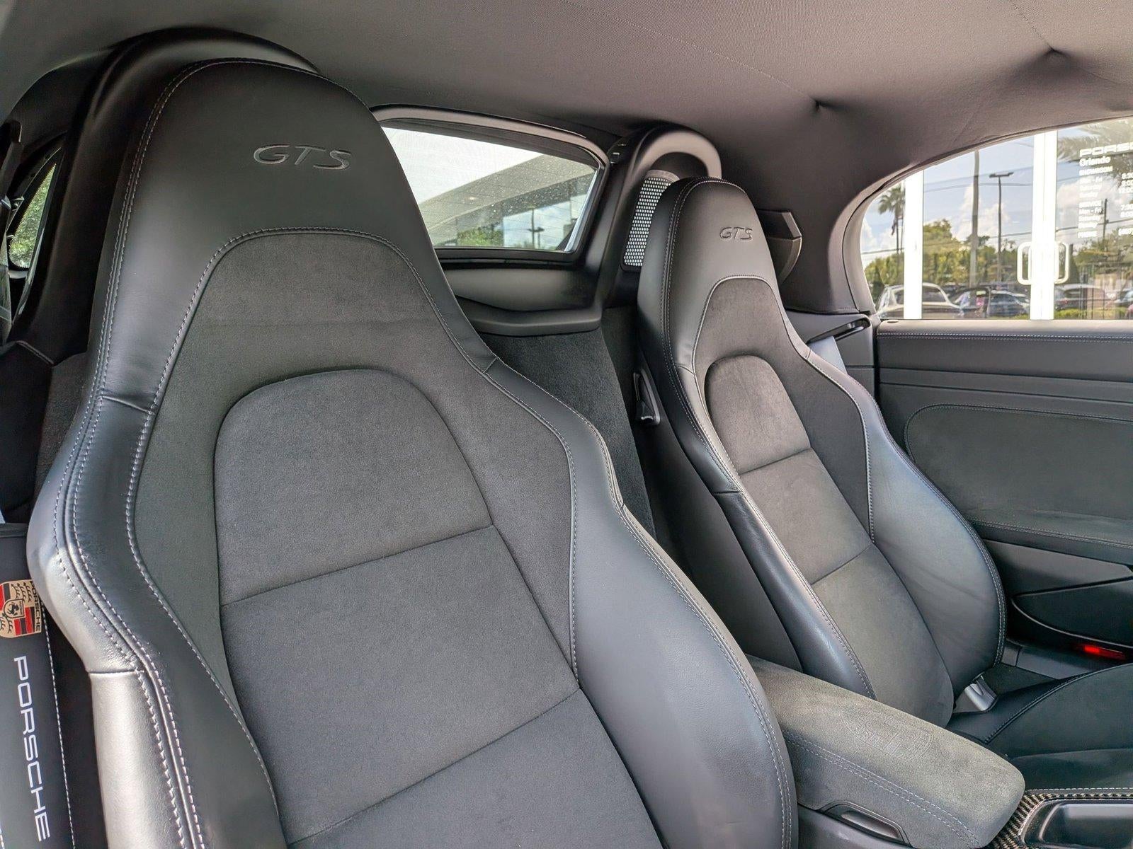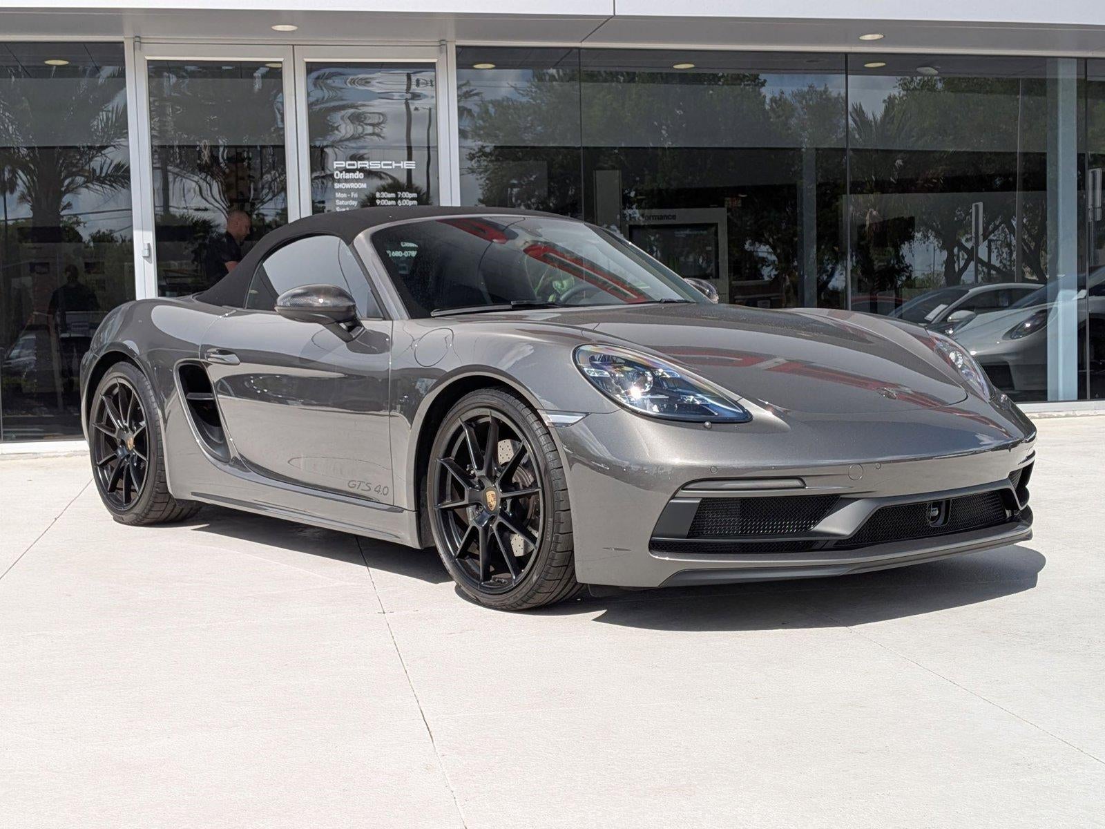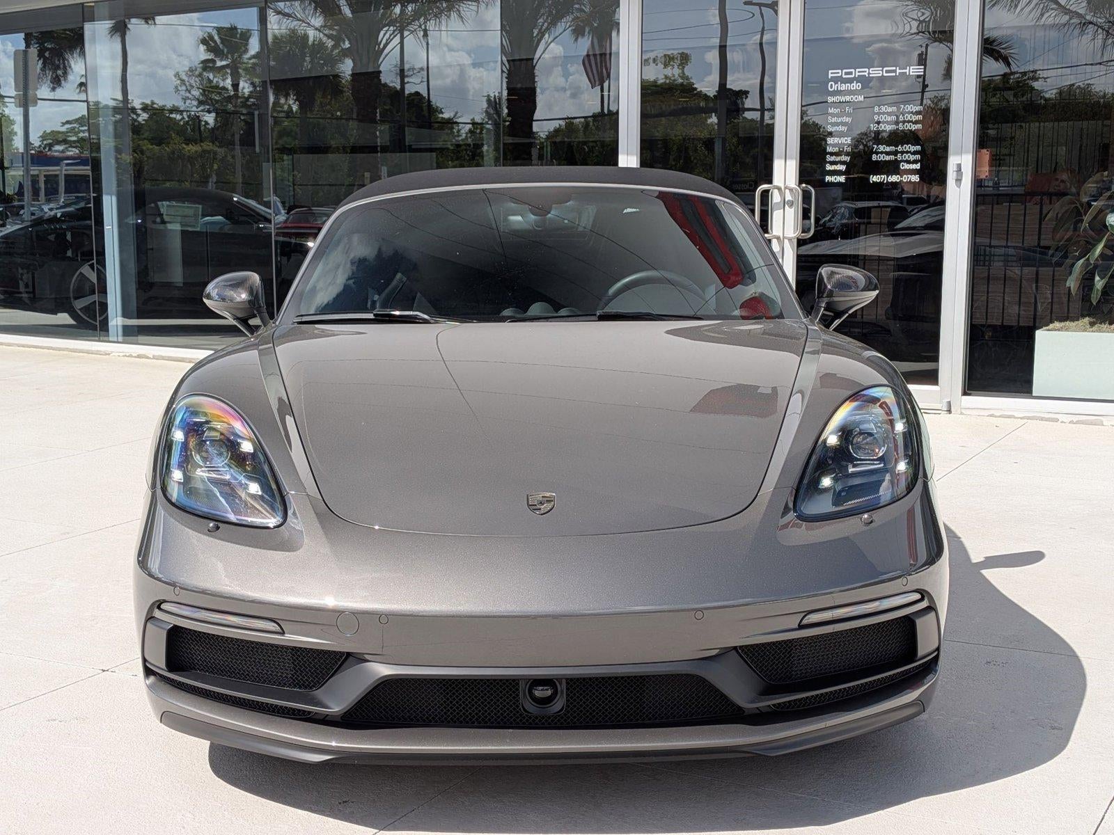 Porsche of Orlando has a wide selection of exceptional pre-owned vehicles to choose from, including this 2025 Porsche 718 Boxster. This Porsche includes: DASHBOARD TRIM PACKAGE IN LEATHER/RACE-TEX BRAKE CALIPERS IN HIGH GLOSS BLACK EXCLUSIVE DESIGN FUEL CAP BOSE SURROUND SOUND SYSTEM Premium Sound System ELECTRIC STEERING COLUMN Adjustable Steering Wheel LED HEADLIGHTS W/PORSCHE DYNAMIC LIGHT SYSTEM INTERIOR TRIM PAINTED IN INT COLOR W/LTHR INTERIOR PEDALS & FOOTREST IN ALUMINUM BLACK, LEATHER SEAT TRIM W/RACE-TEX Leather Seats Premium Synthetic Seats SEAT BELTS IN SILVER GREY HEADLIGHT CLEANING SYS COVERS IN EXTERIOR COLOR GT SPORT STEERING WHEEL IN LEATHER Leather Steering Wheel ADAPTIVE CRUISE CONTROL (ACC) Adaptive Cruise Control Front Collision Mitigation SUN VISORS IN RACE-TEX POWER STEERING PLUS RAISED SUSPENSION Active Suspension STORAGE COMPARTMENT LID IN RACE-TEX W/CREST SUPPLEMENTAL SAFETY BARS IN EXTERIOR COLOR Rollover Protection Bars 18-WAY ADAPTIVE SPORT SEATS PLUS W/MEMORY PKG Mirror Memory Seat Memory Power Passenger Seat Power Driver Seat Passenger Adjustable Lumbar Driver Adjustable Lumbar Bucket Seats MODEL DESIGNATION LOGO ON REAR CHANGED TO 718 BLACK TOP PDK GEAR SELECTOR W/CARBON FIBER TRIM SMARTPHONE COMPARTMENT PREMIUM PACKAGE Keyless Start Steering Wheel Audio Controls Heated Steering Wheel Hands-Free Liftgate Power Door Locks Keyless Entry Blind Spot Monitor Remote Trunk Release PORSCHE LOGO ON REAR IN SATIN BLACK PERS VEHICLE KEYS PAINTED ILLUMINATED DOOR-SILL GUARDS IN CARBON FIBER AGATE GREY METALLIC *Note - For third party subscriptions or services, please contact the dealer for more information.* If you're going to purchase a pre-owned vehicle, why wouldn't you purchase one with CARFAX one-owner report. This vehicle has met all the exacting standards to be classified Certified Pre-Owned. If you're looking for a great pre-owned convertible, look no further. This exceptional car has all the features you want. Quality and prestige abound with this Porsche 718 Boxster GTS 4.0. Added comfort with contemporary style is the leather interior to heighten the quality and craftsmanship for the Porsche 718 Boxster GTS 4.0. This vehicle includes important services and maintenance records, so you can feel more confident about your buying decision. This Porsche 718 Boxster is beautiful and the interior is clean with virtually no flaws. In addition to unbelievable options, this vehicle comes equipped with a factory warranty. High performance is what this vehicle is all about. You will be reminded of that every time you drive it. Treat yourself to a wonderful driving experience in this wel- optioned Porsche 718 Boxster GTS 4.0. Equipped with the latest in driver comforts, this Porsche is the benchmark of modern automotive engineering. You'll quickly realize how much you will need a navigation system once you are stopping for directions or looking up addresses on your phone instead of looking at the road. This Porsche 718 Boxster GTS 4.0 features a navigation system that will free you of these unnecessary headaches.