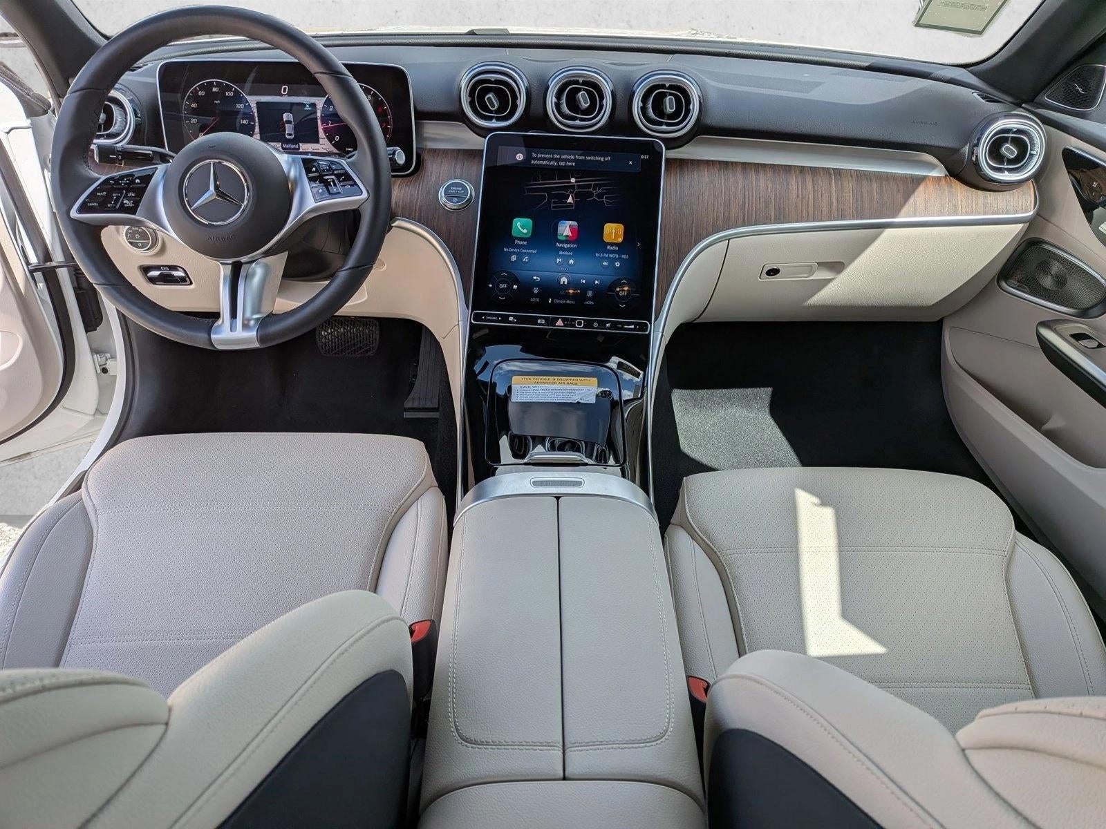 Mercedes-Benz of Orlando is pleased to be currently offering this 2026 Mercedes-Benz C-Class C 300 with 3,360mi. This Mercedes-Benz includes: WHEELS: 7.5J Tires - Front Performance Aluminum Wheels Tires - Rear Performance ACTIVE DISTANCE ASSIST DISTRONIC Adaptive Cruise Control Cruise Control WHEEL LOCKING BOLTS (PIO) Wheel Locks BLACK FABRIC HEADLINER VENTILATED FRONT SEATS Cooled Front Seat(s) Heated Front Seat(s) POLAR WHITE NATURAL GRAIN WALNUT WOOD TRIM Woodgrain Interior Trim EXCLUSIVE TRIM PACKAGE Navigation System Back-Up Camera Aerial View Display System Premium Sound System *Note - For third party subscriptions or services, please contact the dealer for more information.* Put performance, safety, beauty, sophistication and all the right amenities into a car, and here it is! Now you can own luxury without the luxury price tag! This vehicle was engineered to be both economically and environmentally friendly with exceptional fuel efficiency. If, upon choosing the road less traveled you find yourself lost, relax and remember this beautiful car has navigation.